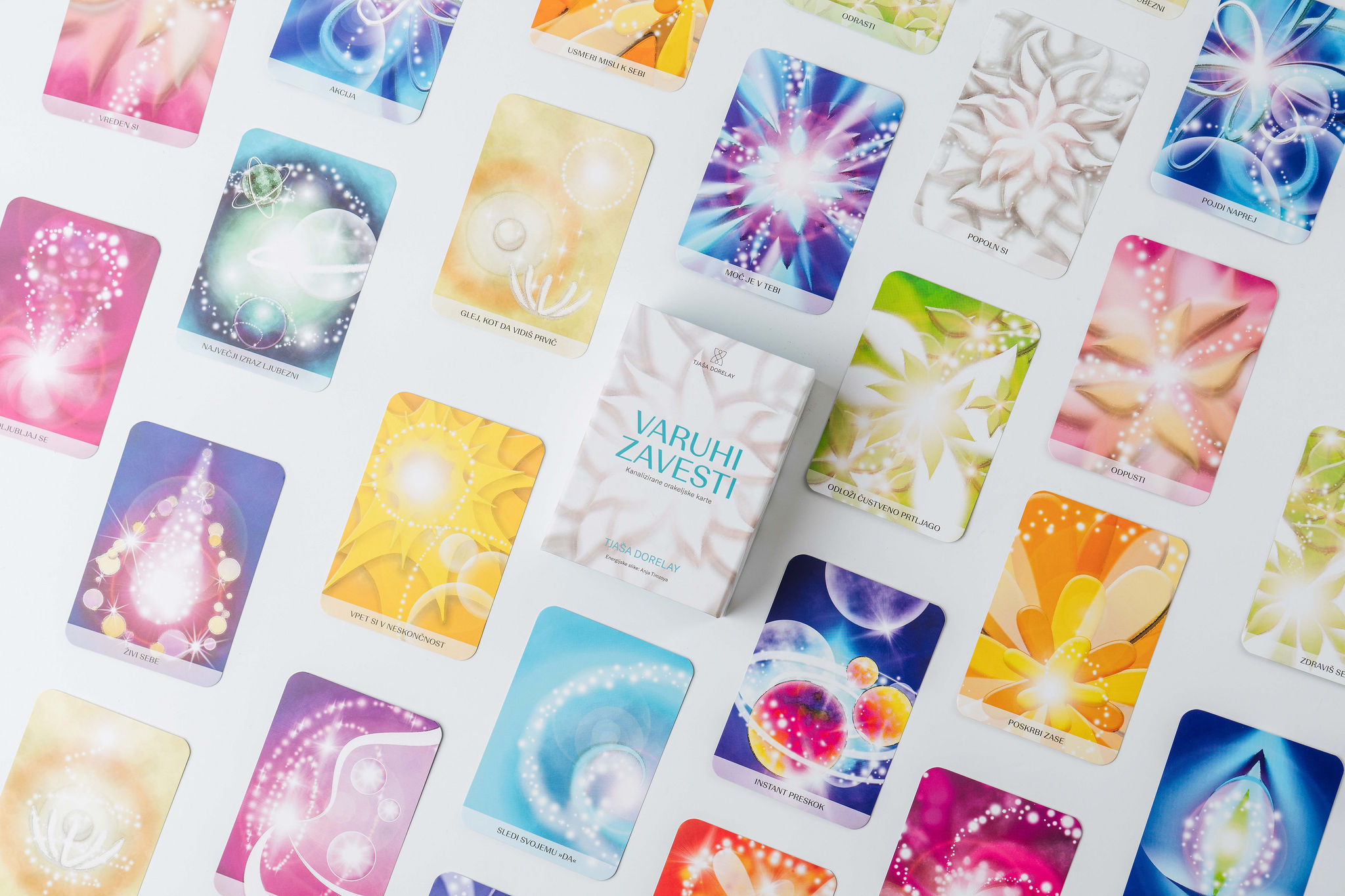 Energijska slika na kartah pa v tvoje vibracijsko polje sidra energijo posameznega VARUHA ZAVESTI, da je manifestacija želene realnosti še lahkotnejša.
